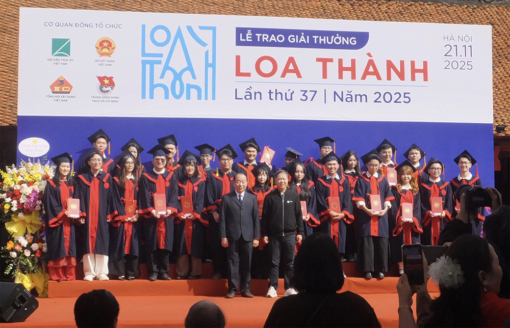 Sáng ngày 21/11/2025 vừa qua, Lễ trao Giải thưởng Loa Thành lần thứ 37 – 2025 đã diễn ra tại Văn Miếu Quốc Tử Giám, Đống Đa, Hà Nội. Đây được xem là một trong những giải thưởng thường niên uy tín nhất dành cho các đồ án tốt nghiệp xuất sắc trong lĩnh vực xây dựng, kiến trúc và quy hoạch ở Việt Nam được tổ chức bởi bốn đơn vị chính: Hội Kiến trúc sư Việt Nam, Tổng Hội Xây dựng Việt Nam, Trung ương Đoàn TNCS Hồ Chí Minh và Bộ Xây dựng.