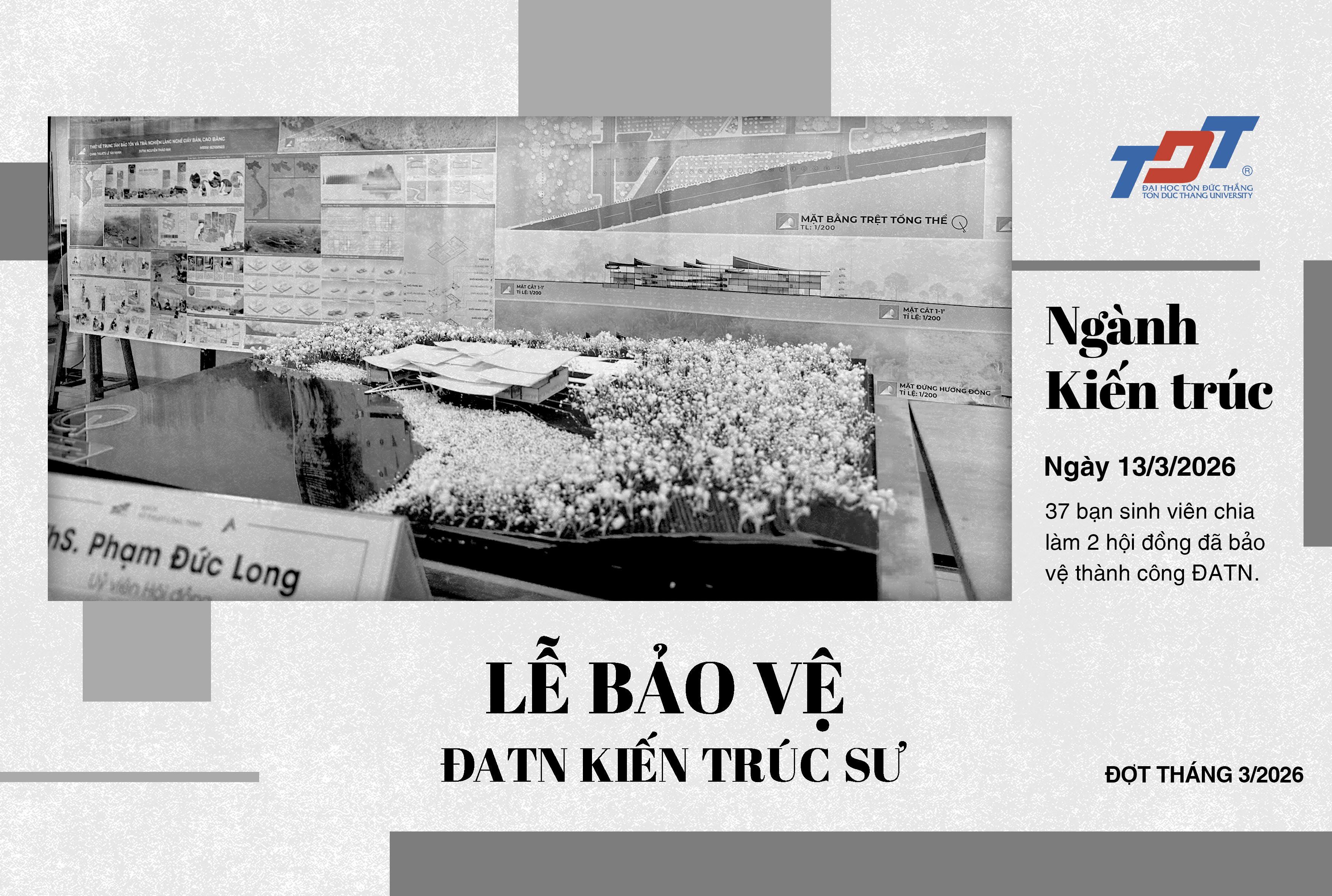 Sáng ngày 13/3/2026, Bộ môn Kiến trúc, Khoa Kỹ thuật Công trình, Trường ĐH Tôn Đức Thắng đã tổ chức Lễ bảo vệ Đồ án Tốt nghiệp ngành Kiến trúc đợt tháng 3 năm 2026 dành cho sinh viên năm cuối của chương trình đào tạo ngành Kiến trúc. Buổi bảo vệ được tổ chức tại phòng D605 và D606, đánh dấu một cột mốc quan trọng trong hành trình học tập và trưởng thành nghề nghiệp của các sinh viên trước khi bước vào môi trường hành nghề kiến trúc.