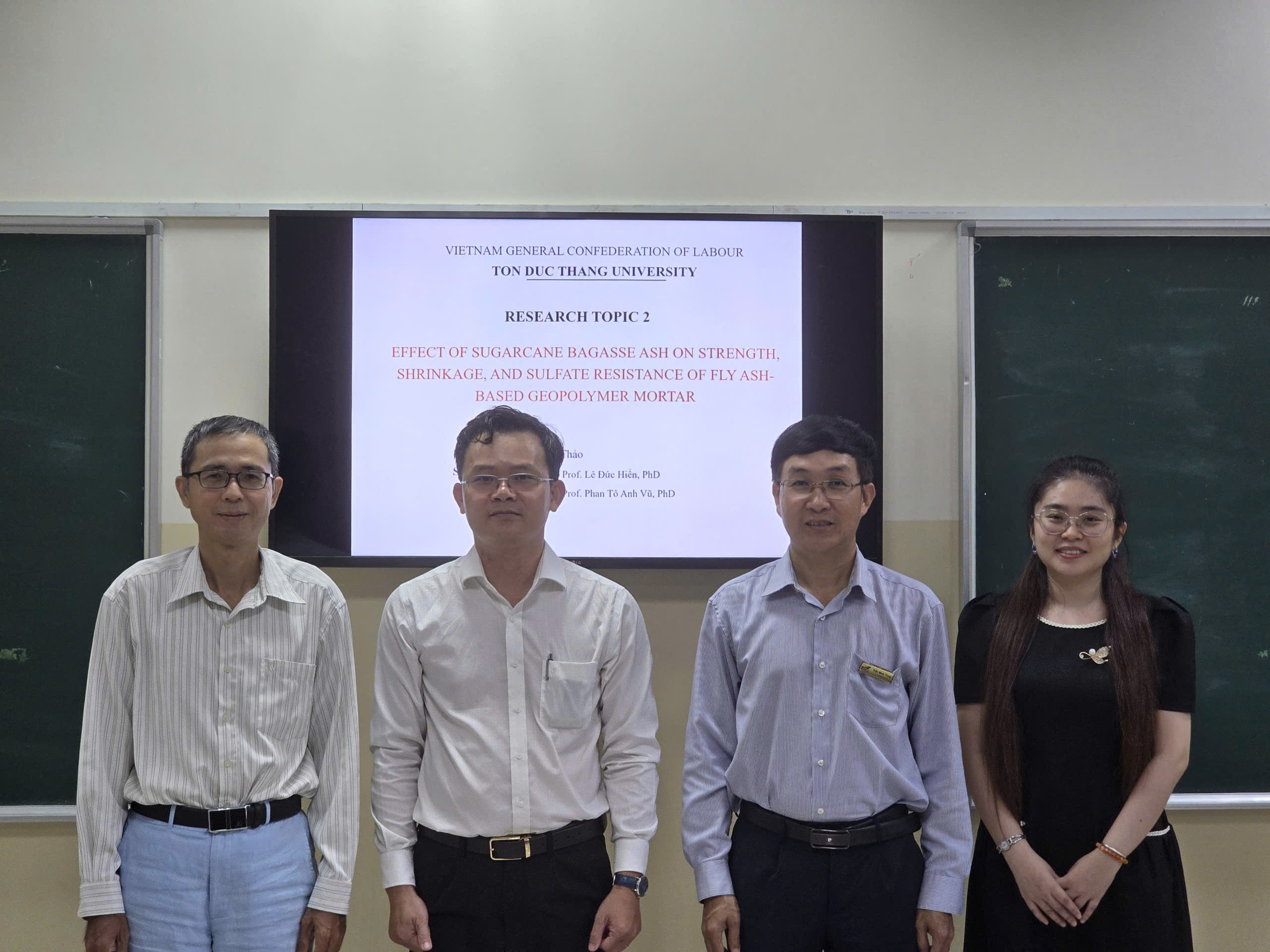 Vào lúc 13g00 chiều nay, ngày 10/03/2026, tại Phòng D0201-B, Trường Đại học Tôn Đức Thắng, Khoa Kỹ thuật Công trình đã tổ chức thành công buổi bảo vệ Chuyên đề Tiến sĩ 2 cho 02 Nghiên cứu sinh ngành Kỹ thuật Xây dựng: Võ Văn Thảo và Vũ Hoàng Trân.